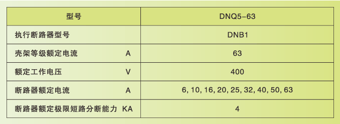 ■ DNQ5系列ATS技術(shù)參數(shù):