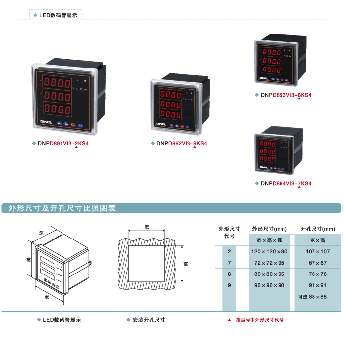 DNPD 891VI3~894VI3 交流三相電壓電流組合表 測量:三相電流、電壓 顯示方式:三排LED數(shù)碼管顯示 符合標準:GB/T22264.1, GB/T13978. |